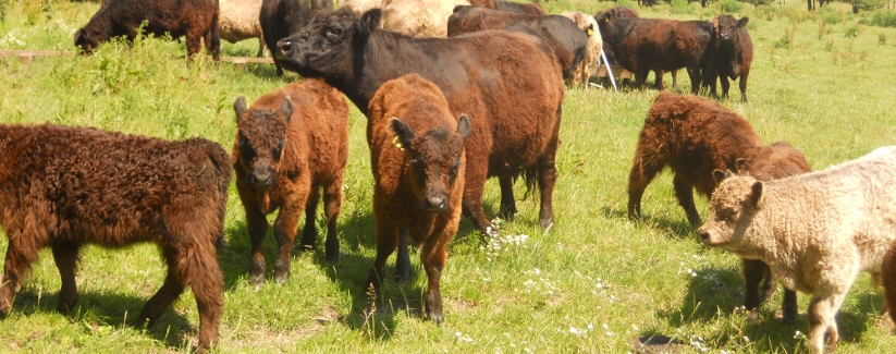 Weiter laufen die ein- bzw. zweijährigen weiblichen und männlichen Galloways in getrennten Herden auf verschiedenen Weiden.